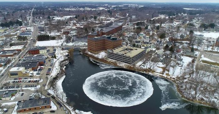 Một ṿng tṛn băng hoàn hảo h́nh thành trên một con sông ở Westbrook, Maine, Mỹ. Ảnh: Tina Radel / National Geographic.