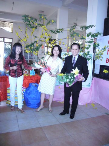 và 2 thầy Quí + Thủy (Hiếu thay mặt Thập bên Mỹ tặng hoa thầy Quí