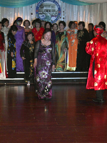 Chị Vân Anh... tà áo tím rạng rỡ lấp lánh... |
